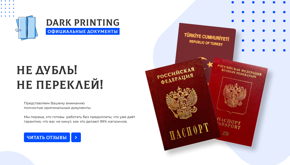 В связи с большим потоком заказов, уточните перед тем, как купить новую личность РФ точные сроки изготовления паспортов и документов.